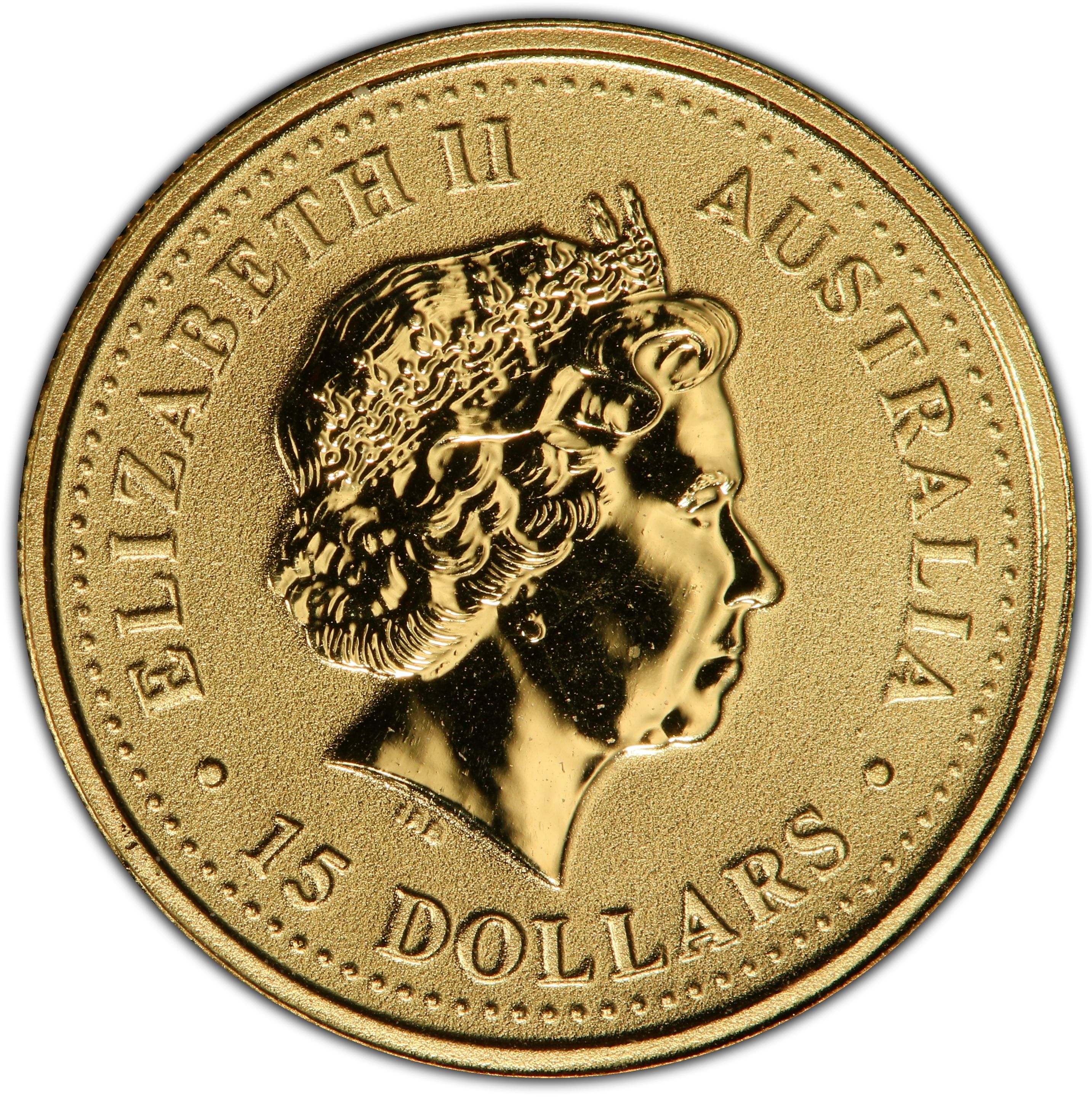 15 долларов — Елизавета II (4-й портрет — золотой самородок кенгуру)