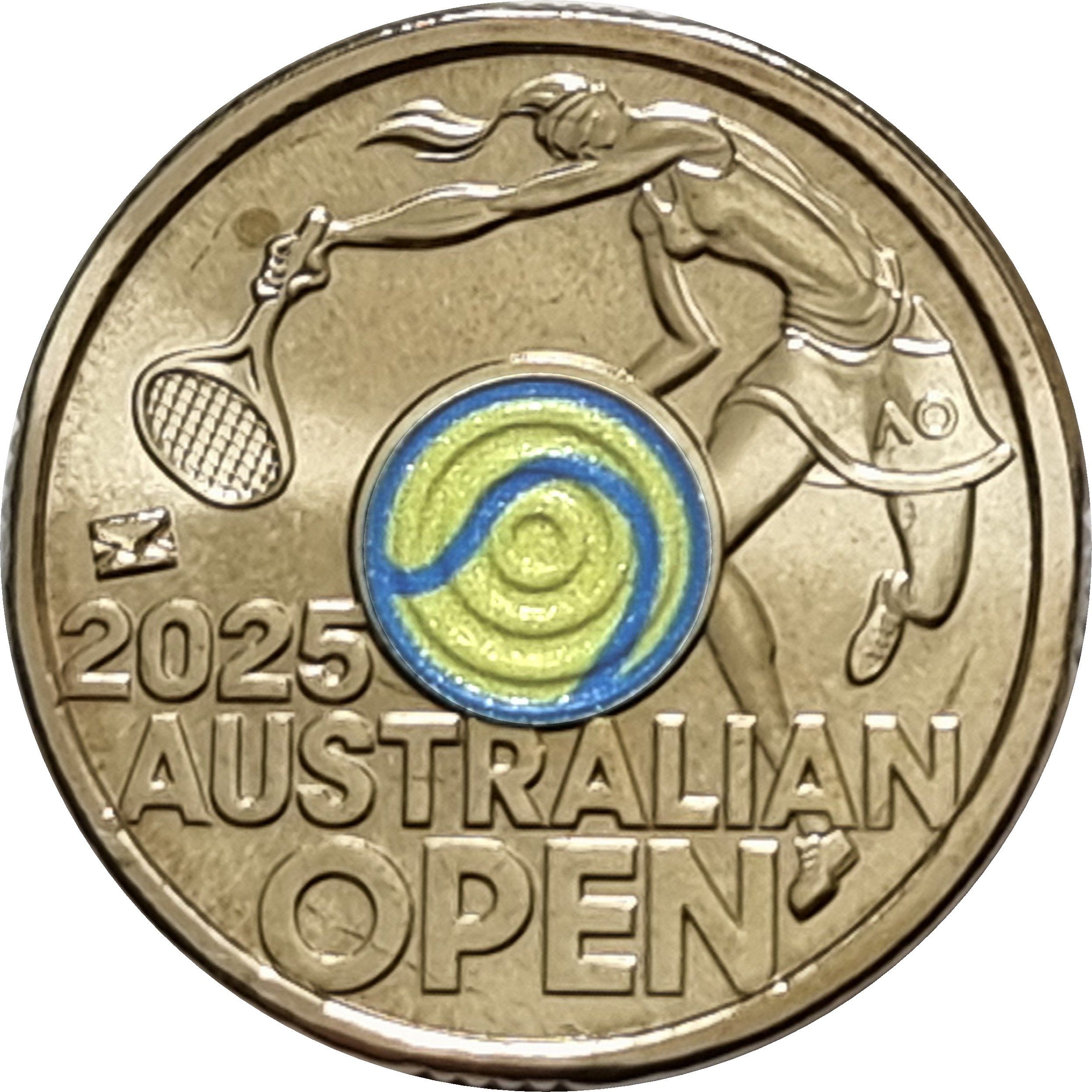 2 доллара — Карл III (1-й портрет — Открытый чемпионат Австралии по теннису среди женщин 2025; флуоресцентная)
