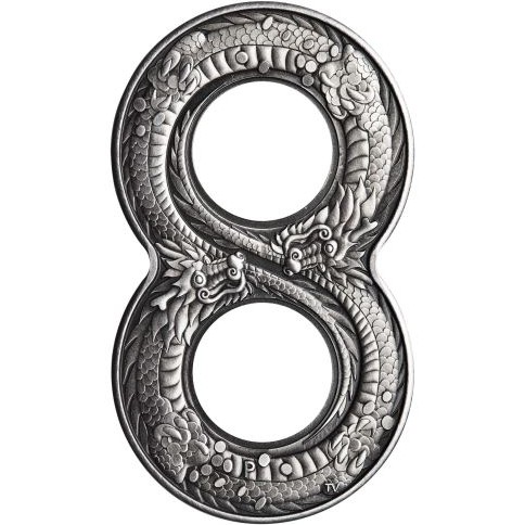 Описание: Два дракона, обернувшиеся друг вокруг друга и держащие монеты в когтях