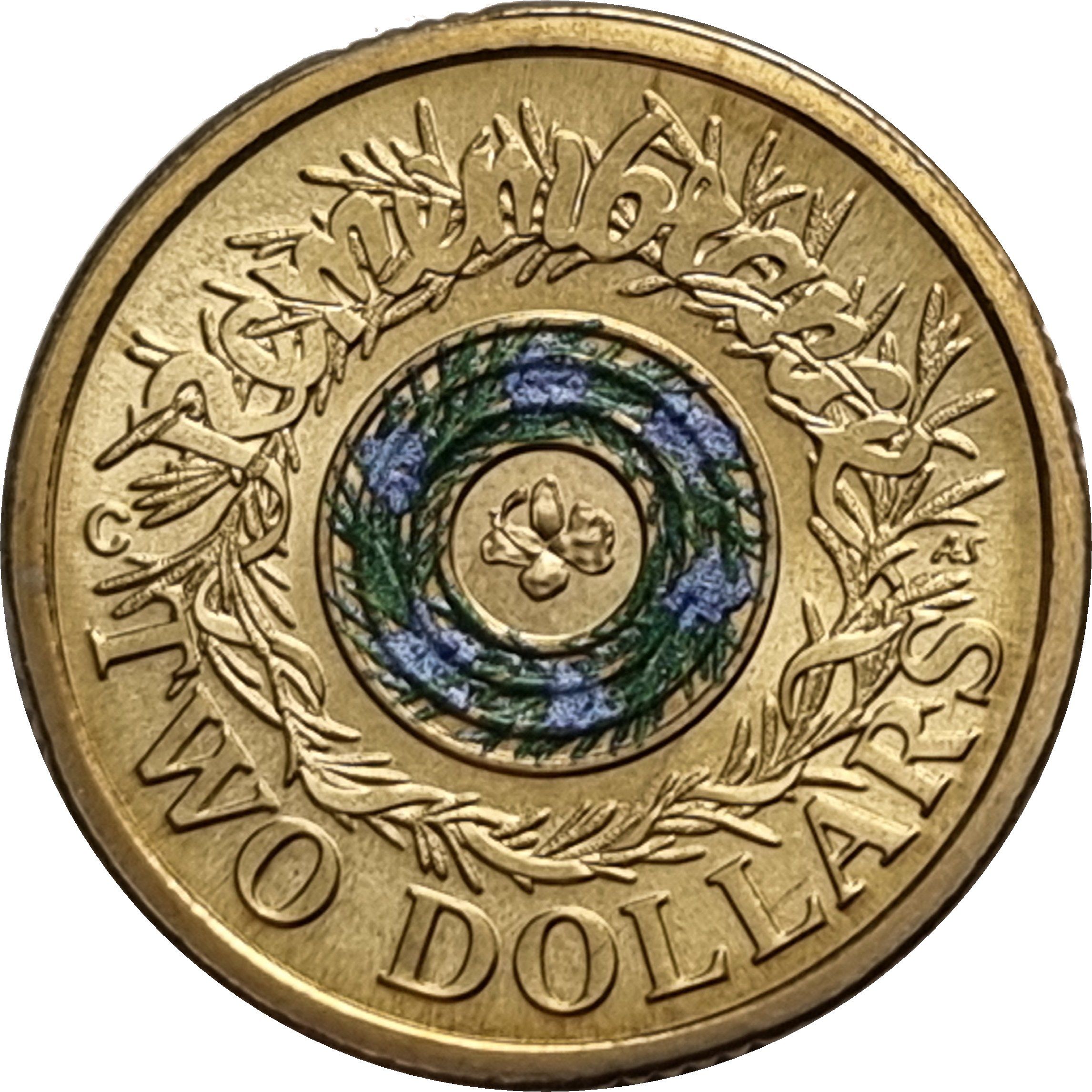 Название: 2 доллара — Елизавета II (4-й портрет — День памяти — веточка розмарина)