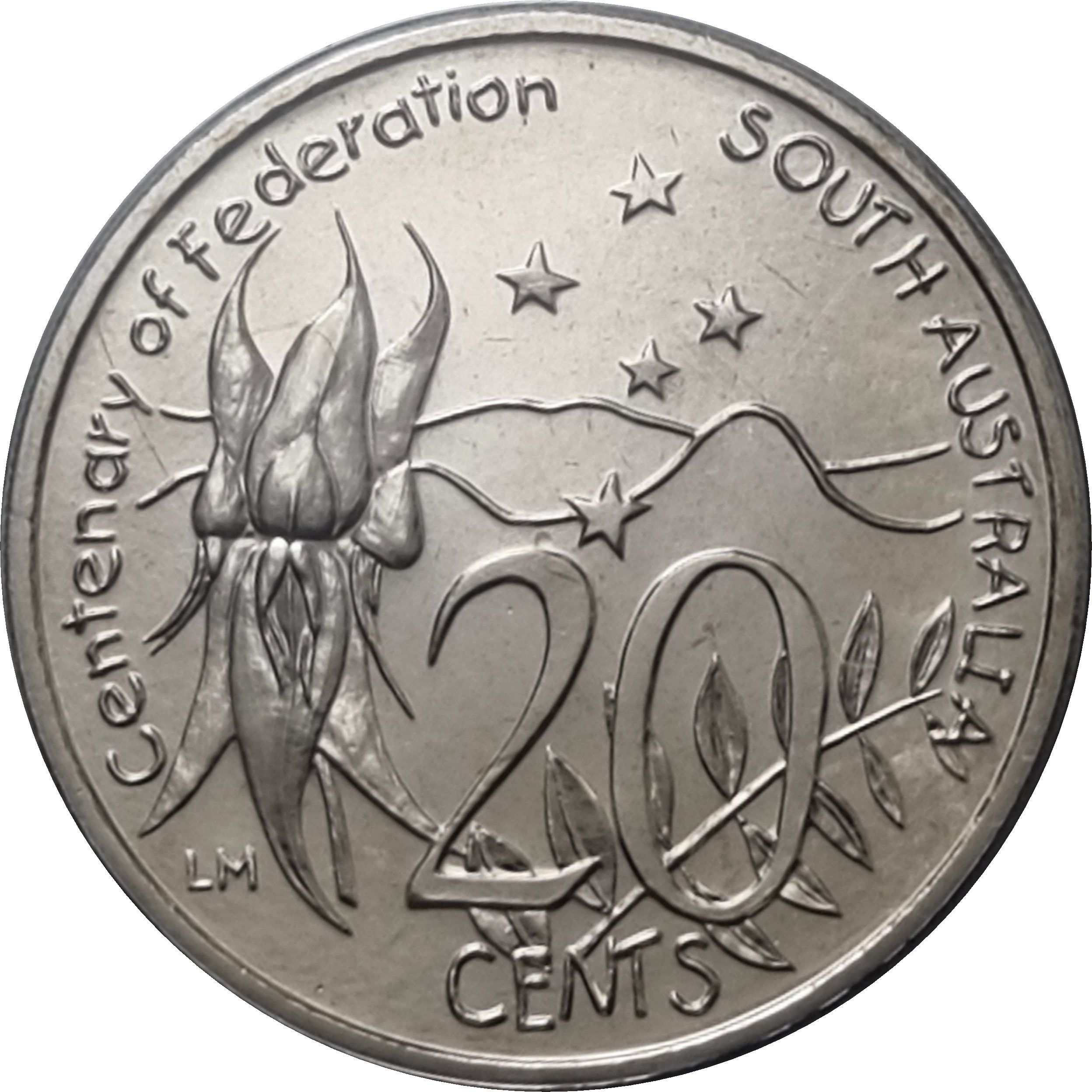 20 центов — Елизавета II (4-й портрет — Столетие Федерации — Южная Австралия)