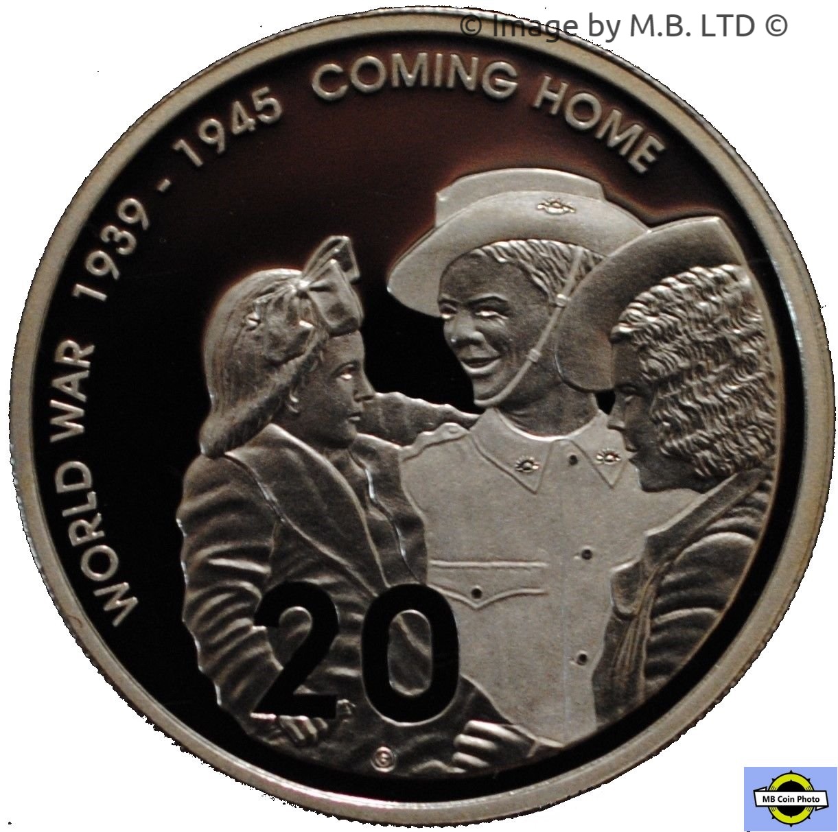 20 центов — Елизавета II (4-й портрет — Возвращение домой — Конец Второй мировой войны — Чистое серебро Proof)