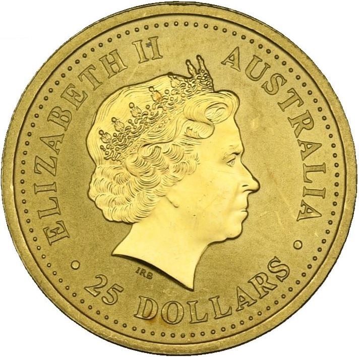 25 долларов — Елизавета II (4-й портрет — Год Собаки — Золотая монета)