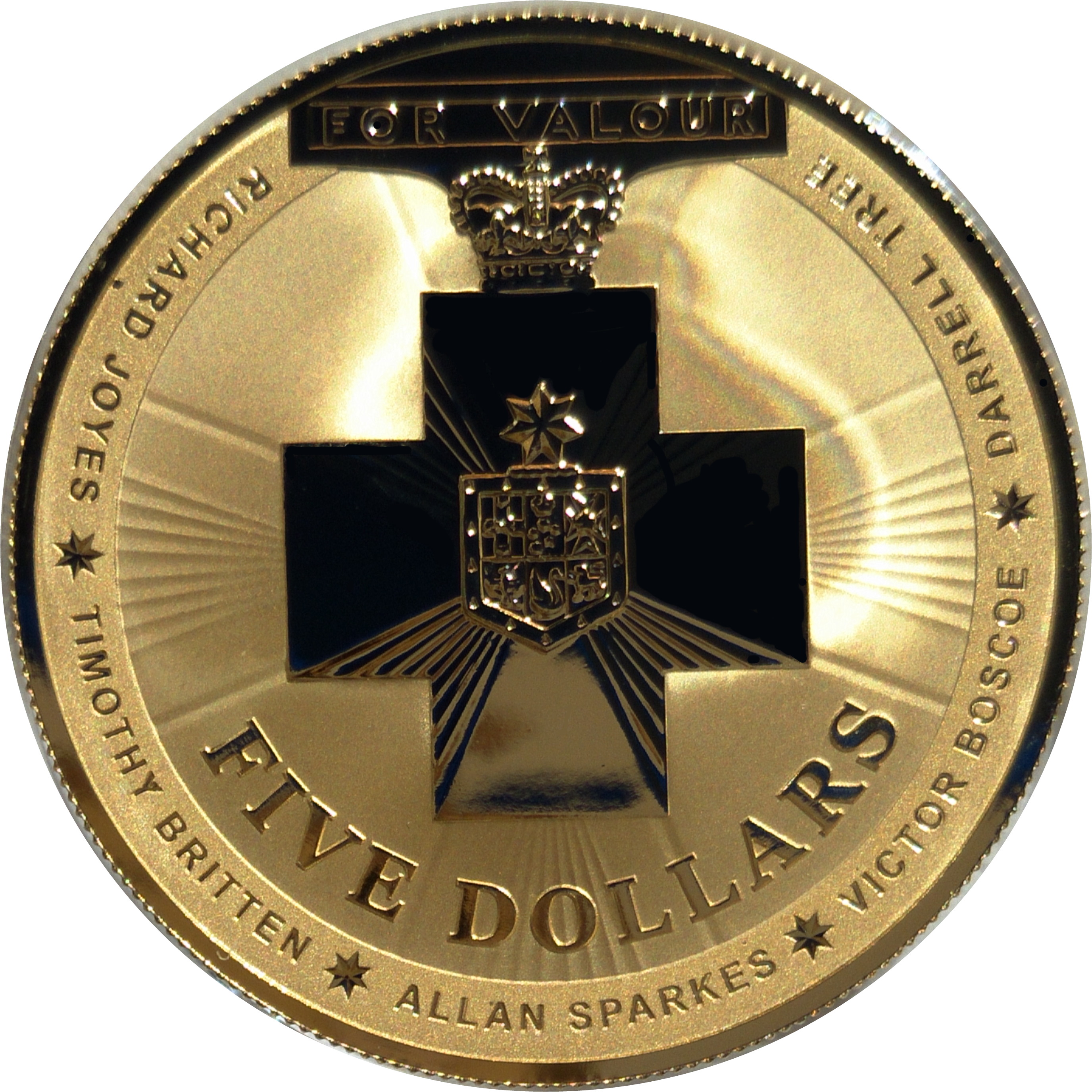 Название: 5 долларов — Елизавета II (4-й портрет — Австралийская медаль за храбрость — серебро с позолотой)