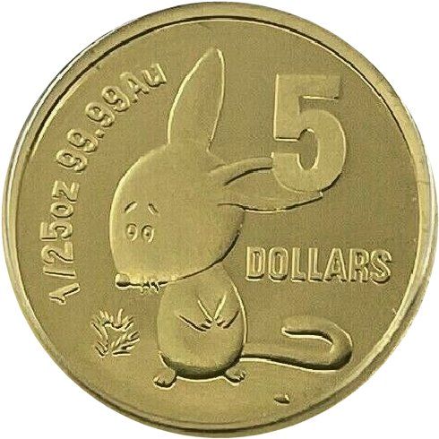 Название: 5 долларов — Елизавета II (4-й портрет — Бинни — Билби; пробная монета)