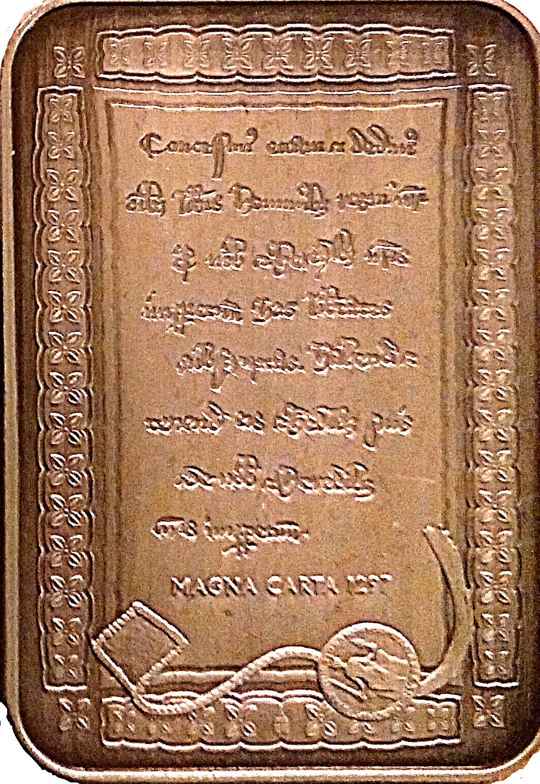 Описание: На монеті зображено королівську печатку короля Джона, яка була прикріплена до оригіналу Великої хартії вольностей 1215 року, а також вибрані слова з випуску Inspeximus 1297 року, що зберігається в австралійському парламенті.