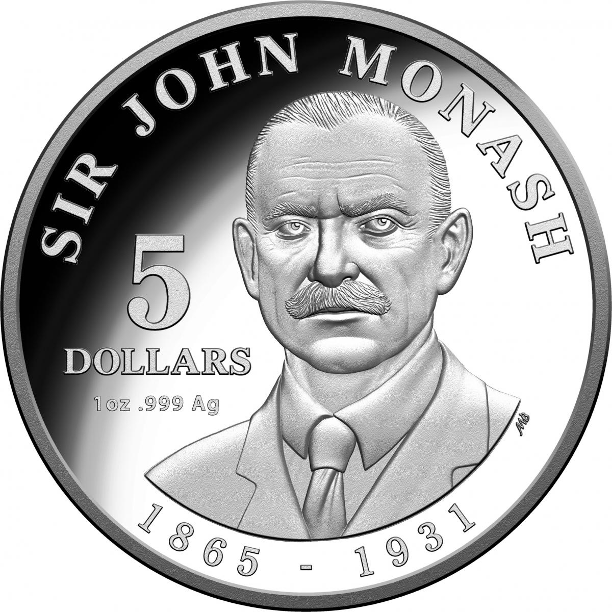 Описание: Изображение сэра Джона Монаша в анфас. Текст вокруг и номинал слева.