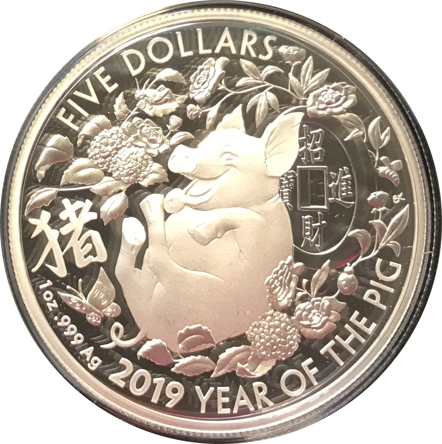 5 доларів — Єлизавета II (4-й портрет — Рік Свині — Срібна проба)