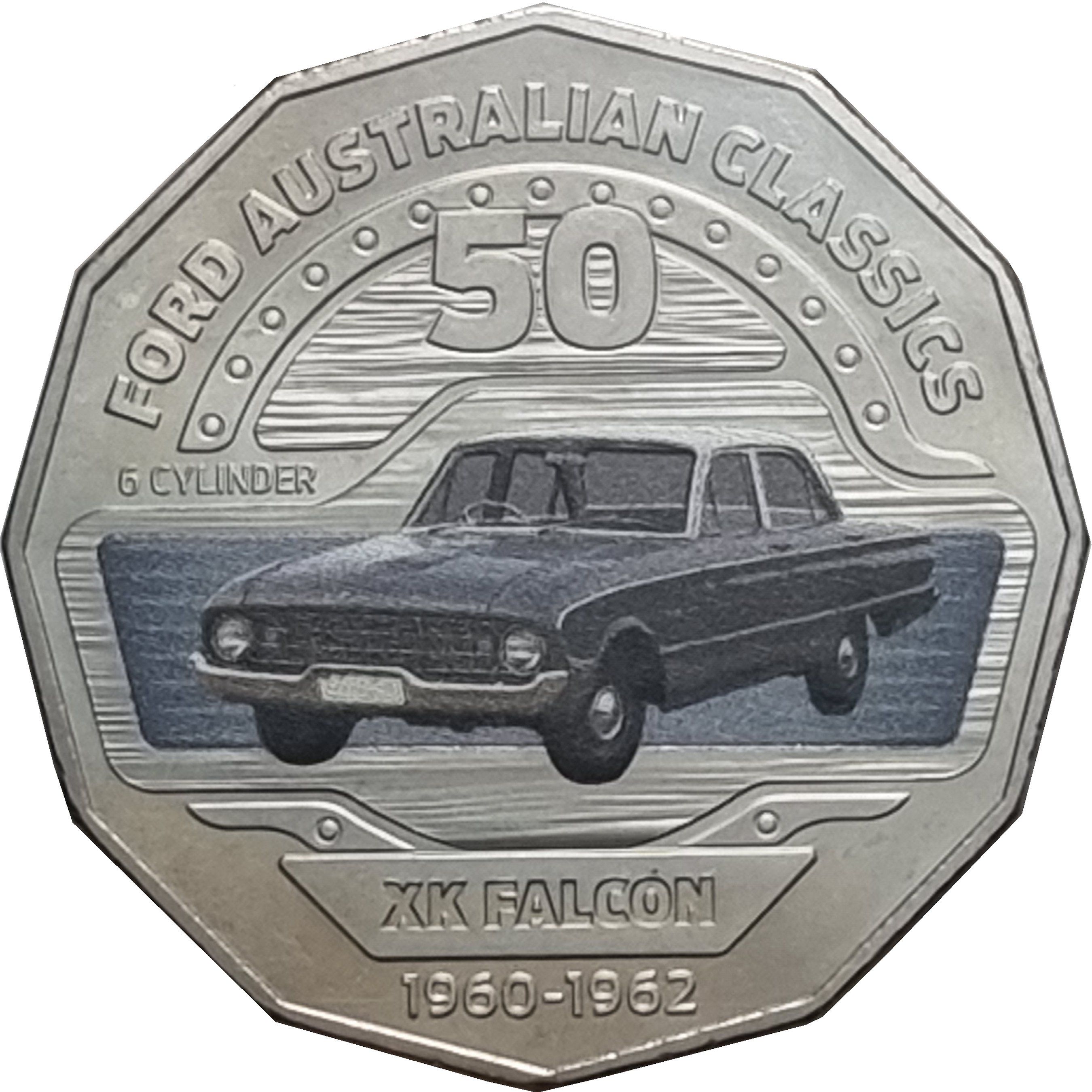 50 центов — Елизавета II (4-й портрет — 04 — Ford XK Falcon Sedan)