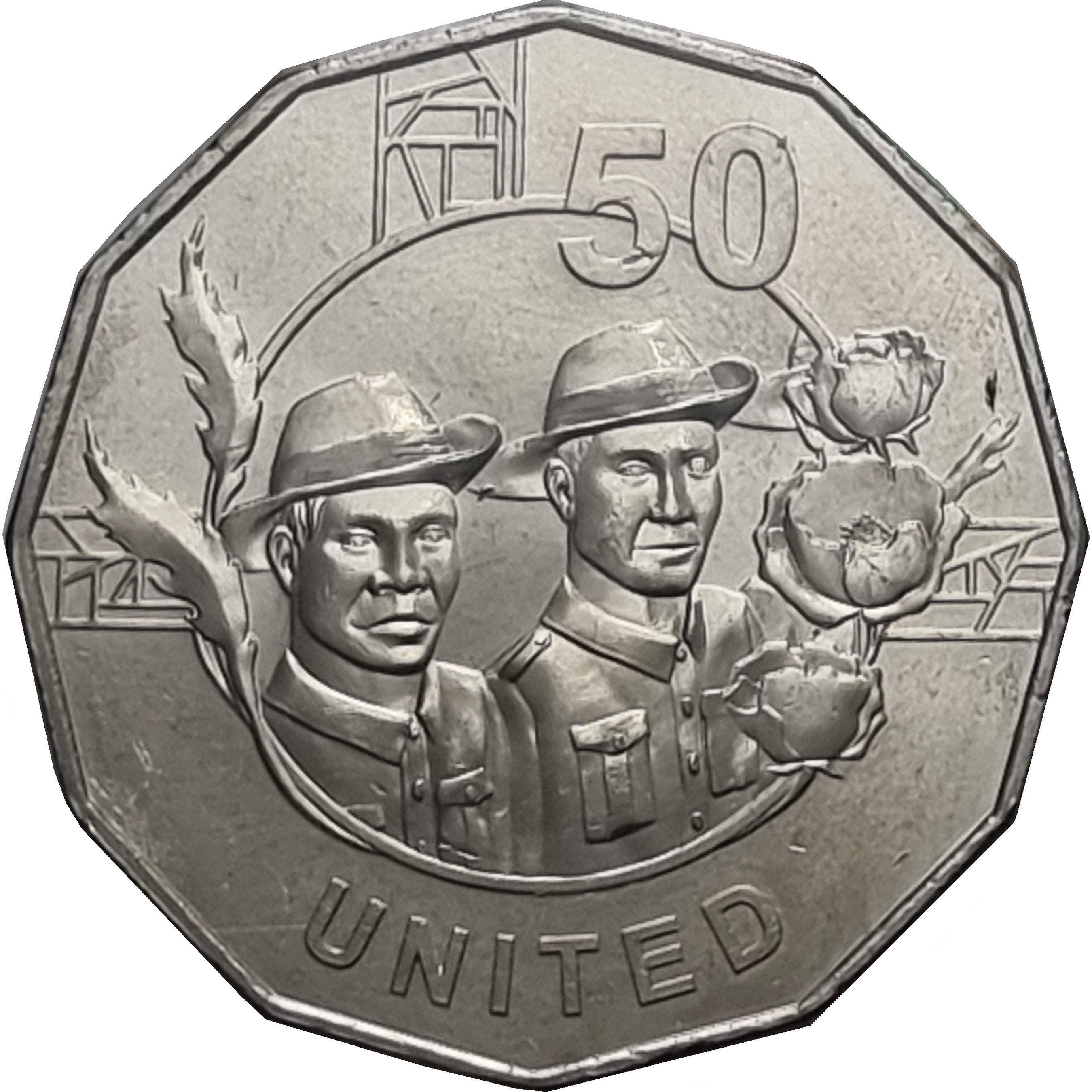 50 центов — Елизавета II (4-й портрет — Дух Анзак — Объединенные)