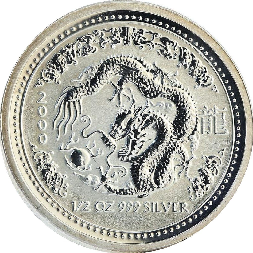 50 центов — Елизавета II (4-й портрет — Год Дракона — Серебряная монета)