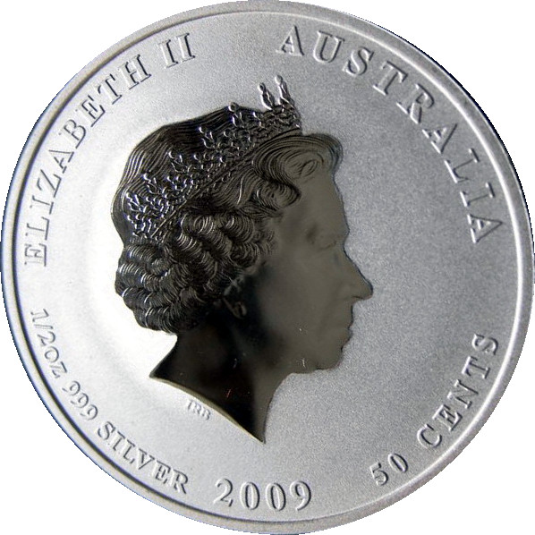 50 центов — Елизавета II (4-й портрет — Год Быка — Серебряная монета)