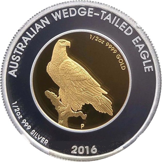 50 долларов — Елизавета II (4-й портрет — австралийский клинохвостый орел — биметаллическая)