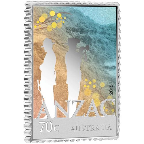 Описание: На реверсе изображены силуэты австралийского и новозеландского солдат на фоне изрезанных холмов полуострова Галлиполи в бухте Анзак в цвете. Также на монете изображены веточки золотой акации, номинал и слова «ANZAC» и «Australia».