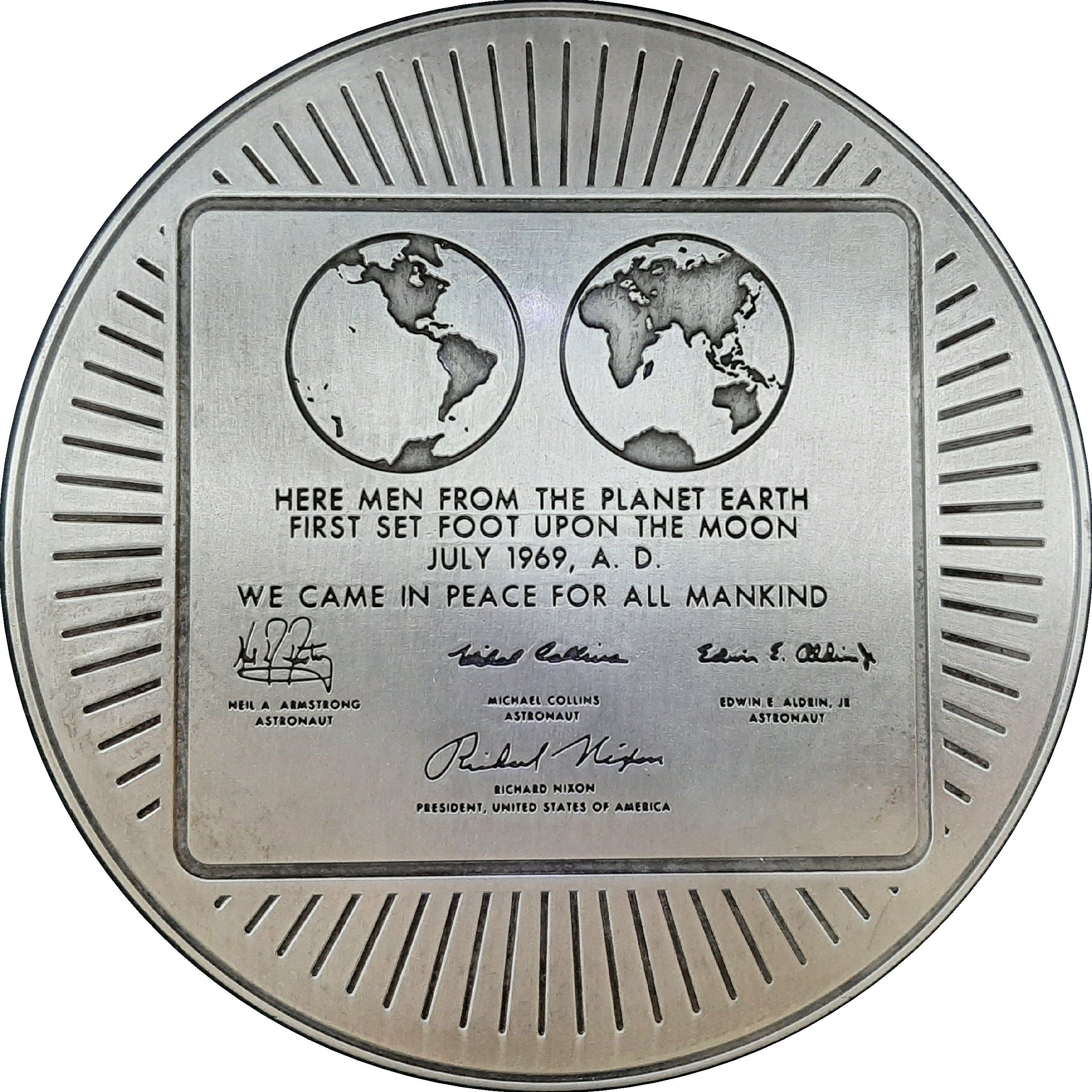 Описание: Зображення пам'ятної місячної таблички, яка була прикріплена до місячного модуля «Аполлон-11».