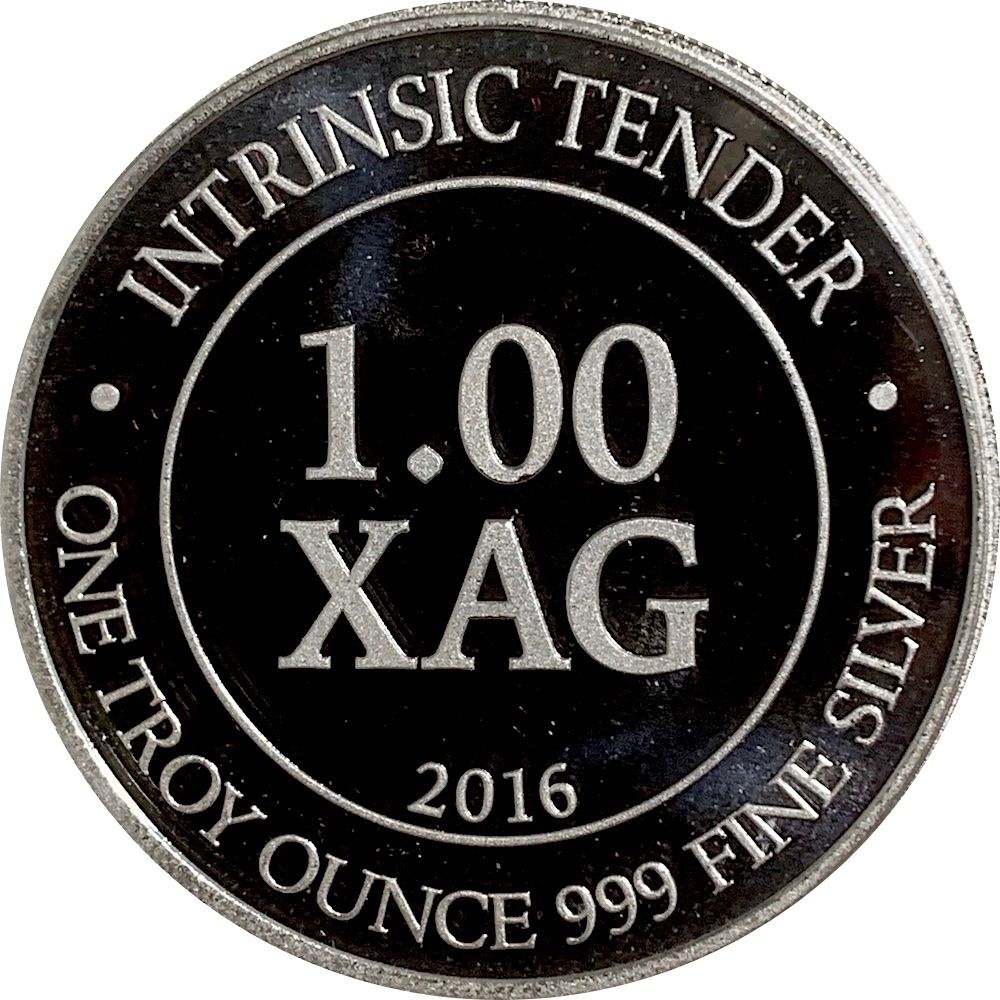 Описание: На зворотному боці в центрі розміщений ISO-код однієї тройської унції срібла, а нижче — рік випуску, все оточене круговою рамкою. Назва приватної монетної компанії розміщена вгорі, а склад металу — внизу.