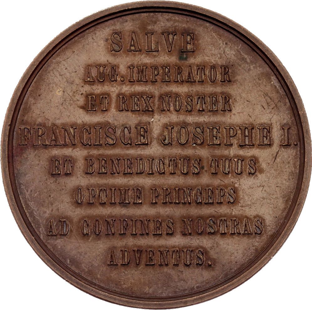 "SALVE AUG. IMPERATOR ET REX NOSTER FRANCISCE JOSEPHE I. ET BENEDICTUS TUUS OPTIME PRINCEPS AD CONFINES NOSTRAS ADVENTUS.