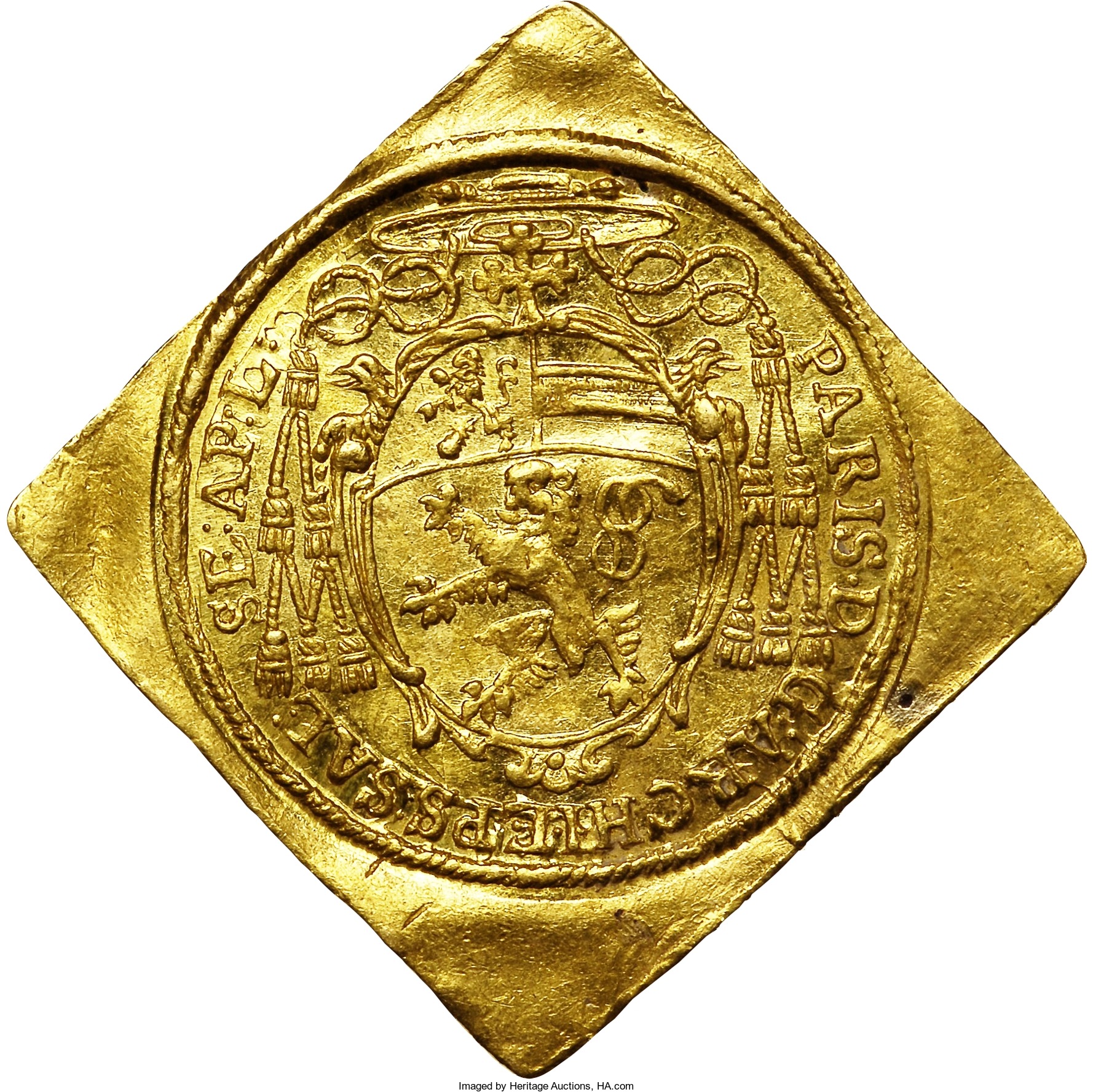Описание: Орнаментований овальний щит під хрестом і кардинальським капелюхом. У верхній третині герб Зальцбурга, а нижче — герб архієпископа. Напис навколо (починається з 2h) розділений знизу орнаментами.