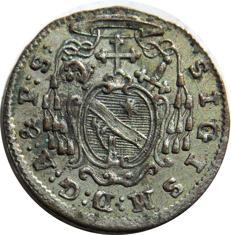 Описание: Герб Зальцбурга в овальному щиті, верхня частина розділяє дату, нижня частина в рамці розділяє легенду. Легенда навколо (початок 1h).