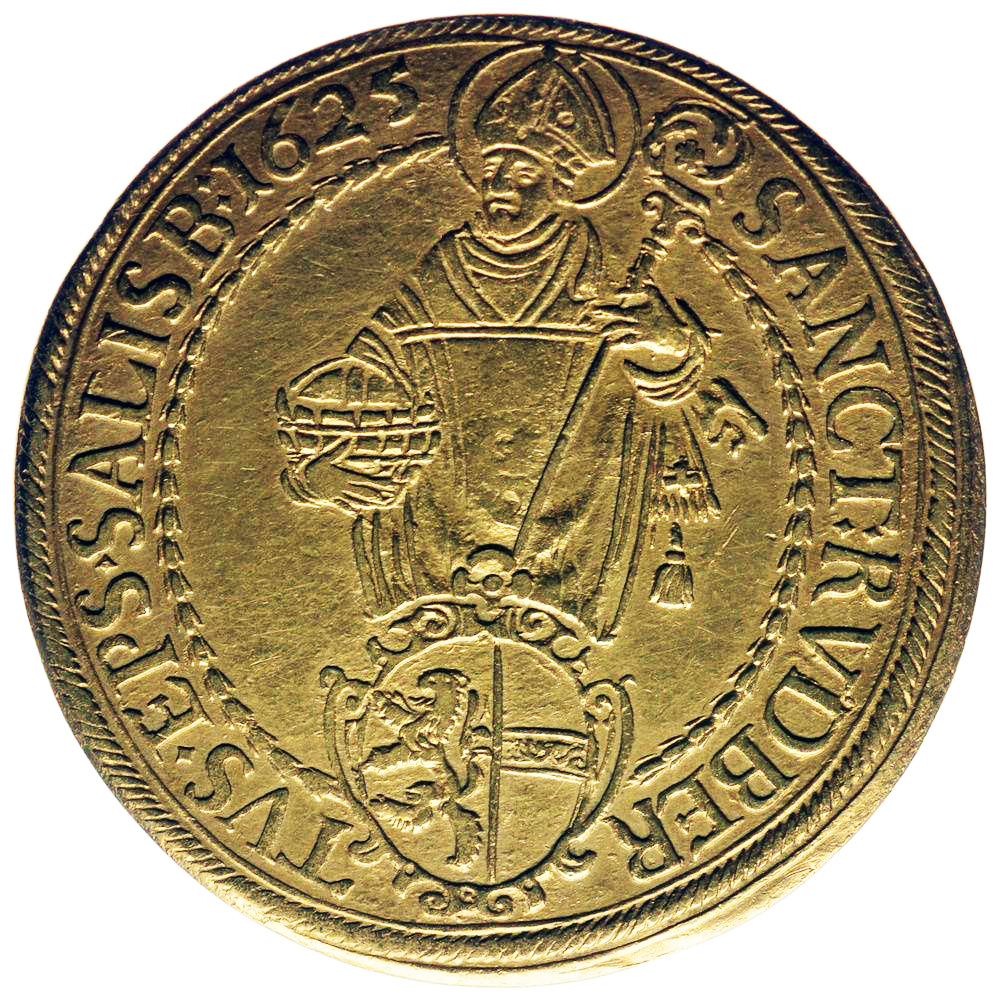 Описание: Святий Руперт тримає в лівій руці сільничку, в правій — пастуший посох, стоячи над гербом Зальцбурга.