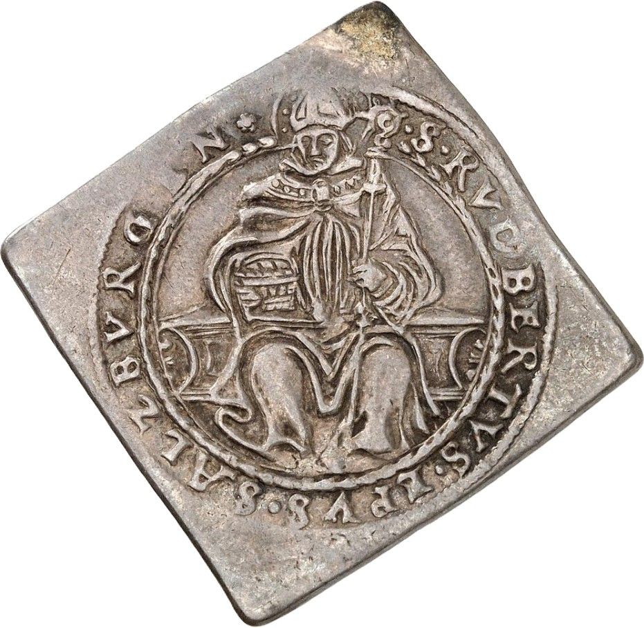 Описание: Три щити, над Зальцбургом розділяють дату, під гербом архієпископа, в облямованому колі. Напис навколо (починається о 12 годині).