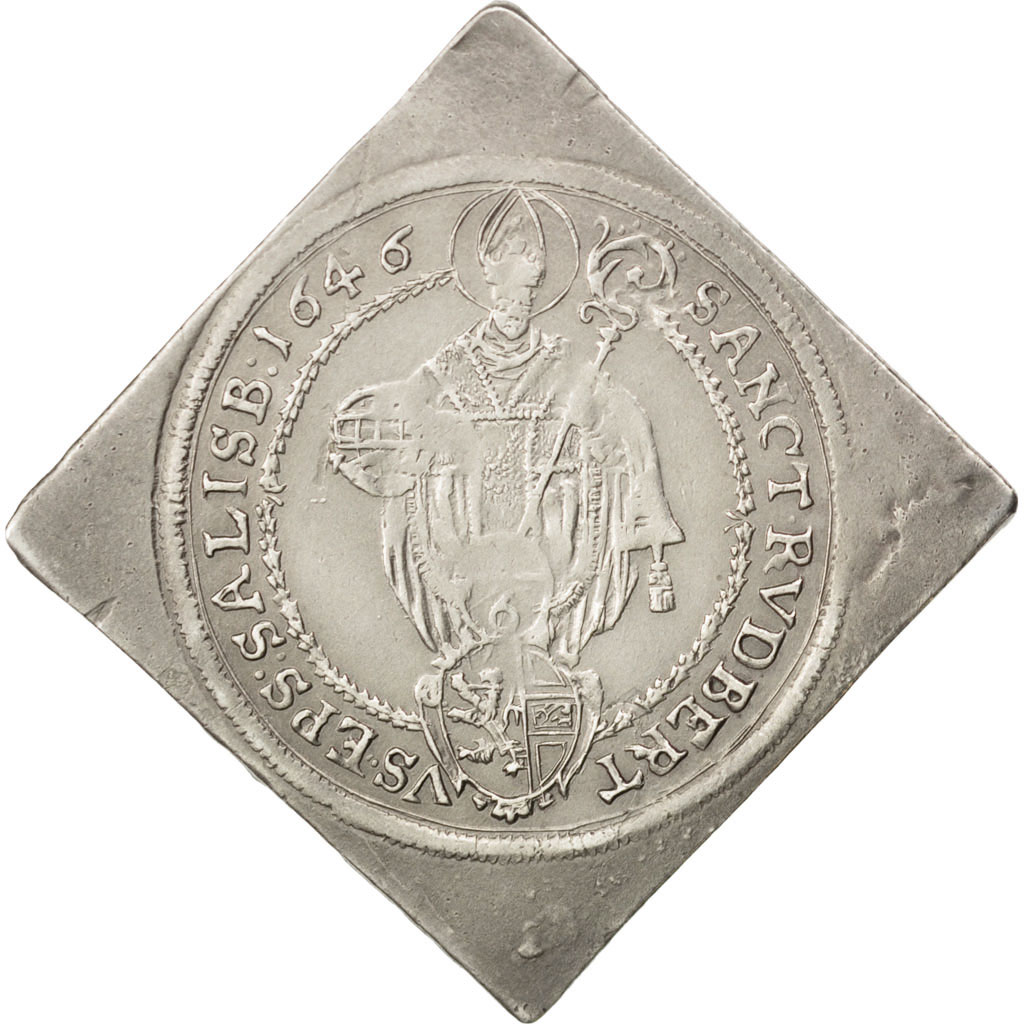 Описание: Святий Руперт стоїть зі своєю сільничкою та пасторалем, дрібна вартість у картуші та герб Зальцбурга в овальному щиті нижче.