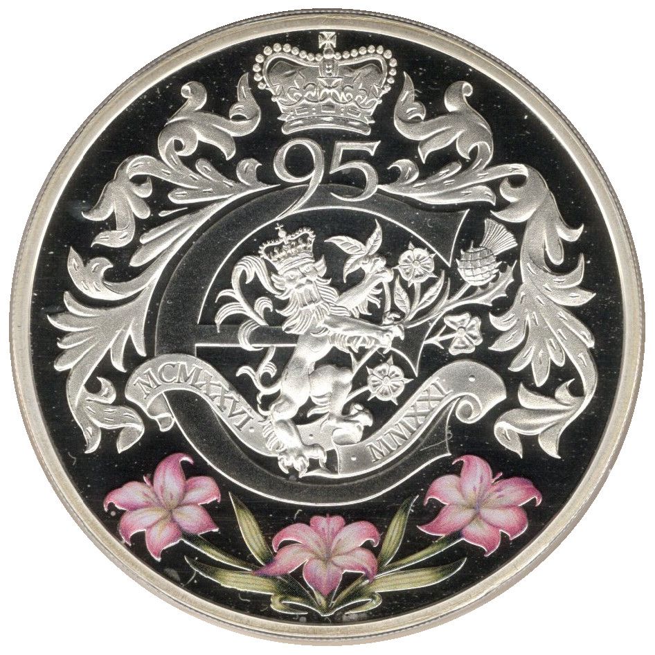 5 фунтов — Елизавета II (95-летие; серебряная монета Proof)