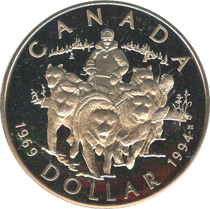 1 доллар — Елизавета II (патруль северной собачьей команды RCMP)