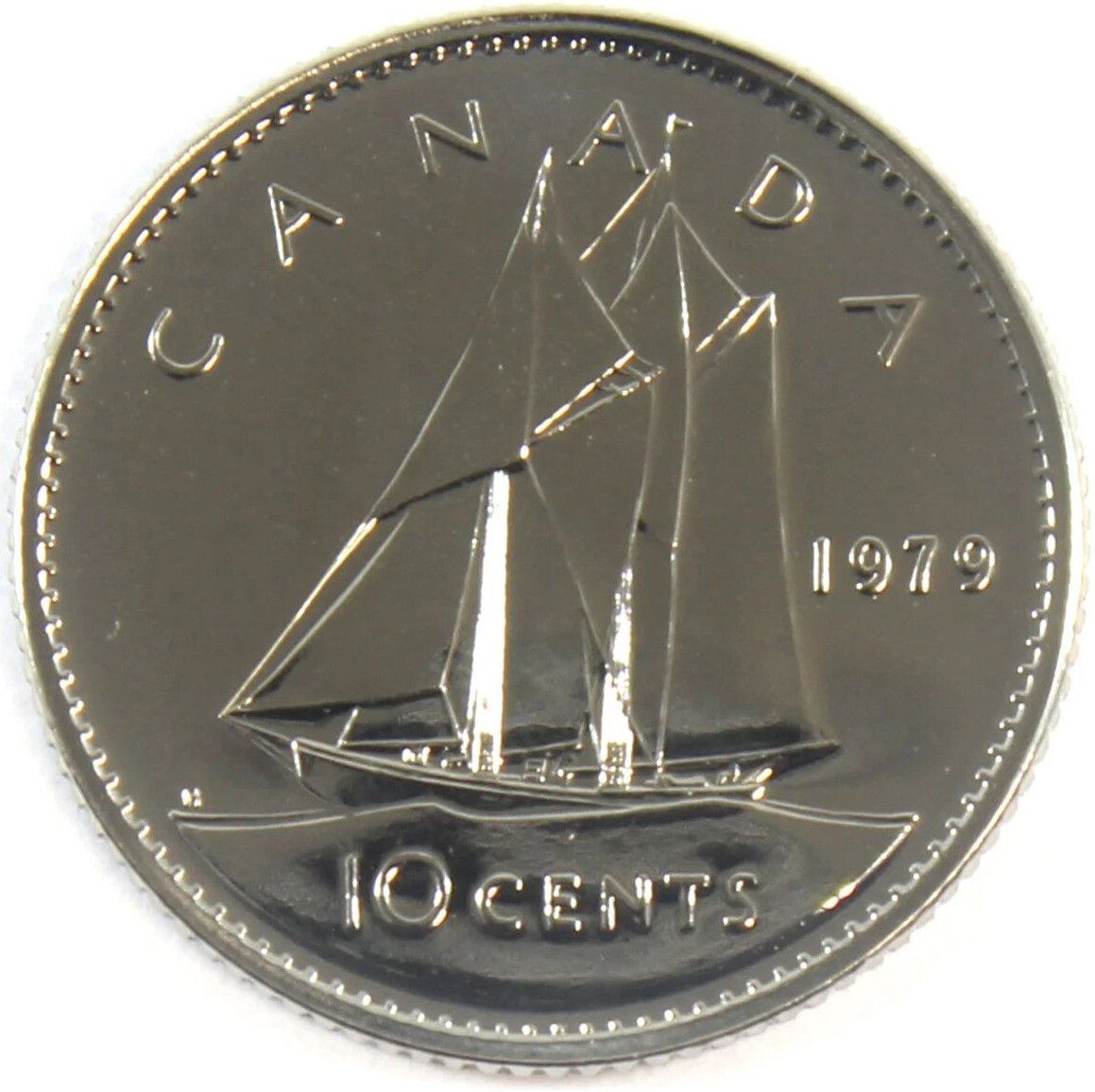 Описание: На монете изображен парусник Bluenose, канадская шхуна из Новой Шотландии, знаменитое гоночное судно и символ провинции, окруженный номиналом и надписью «CANADA».