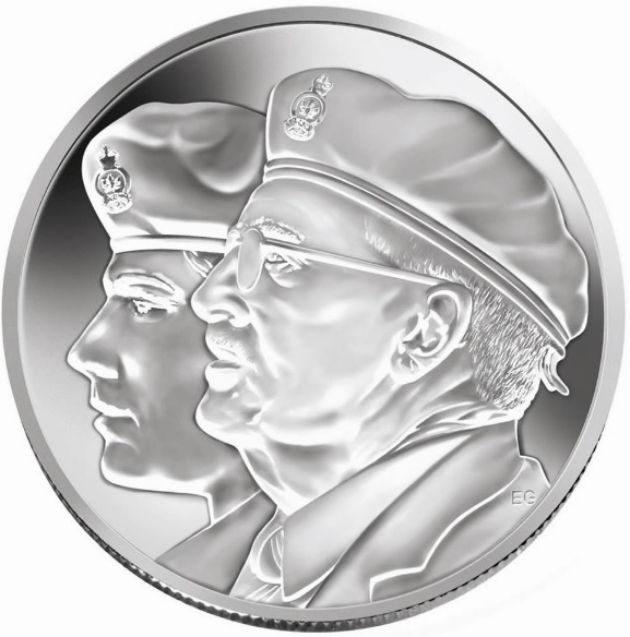 Описание: Изображает двух ветеранов войны разных поколений в профиль, объединенных любовью к родине и стоящих бок о бок.