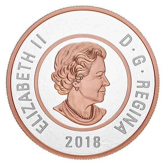 Описание: Мотив на реверсе, созданный художником Брентом Таунсендом, изображает взрослого белого медведя, стоящего на ледяном берегу и наблюдающего за арктическим пейзажем, раскрывающимся перед ним в начале лета. Белый медведь и ледяной берег, как и ободок монеты, покрыты позолотой. На реверсе нанесены слова «CANADA» и номинал «2 DOLLARS».