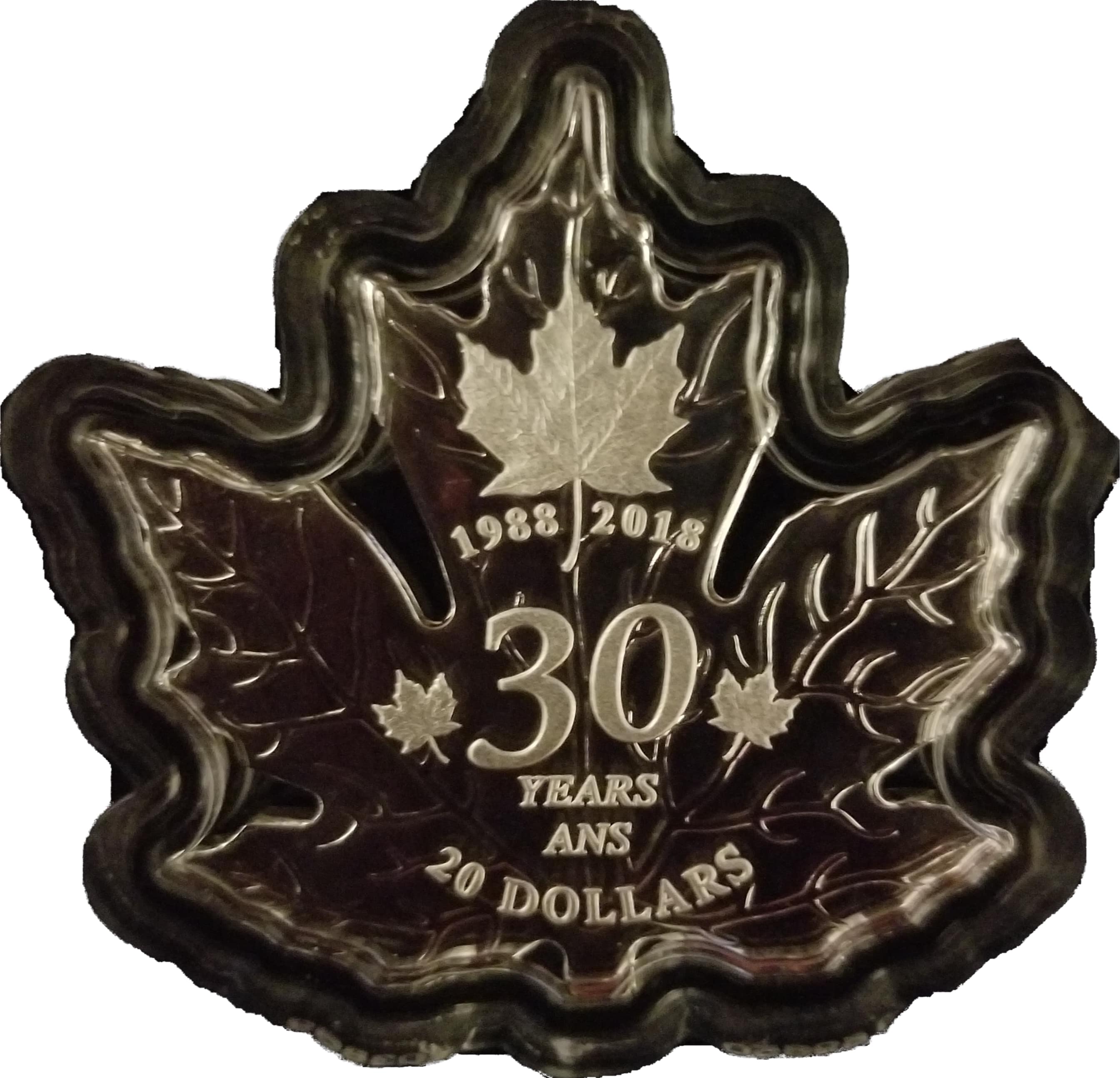 Название: 20 долларов — Елизавета II (30-летие, в форме кленового листа)
