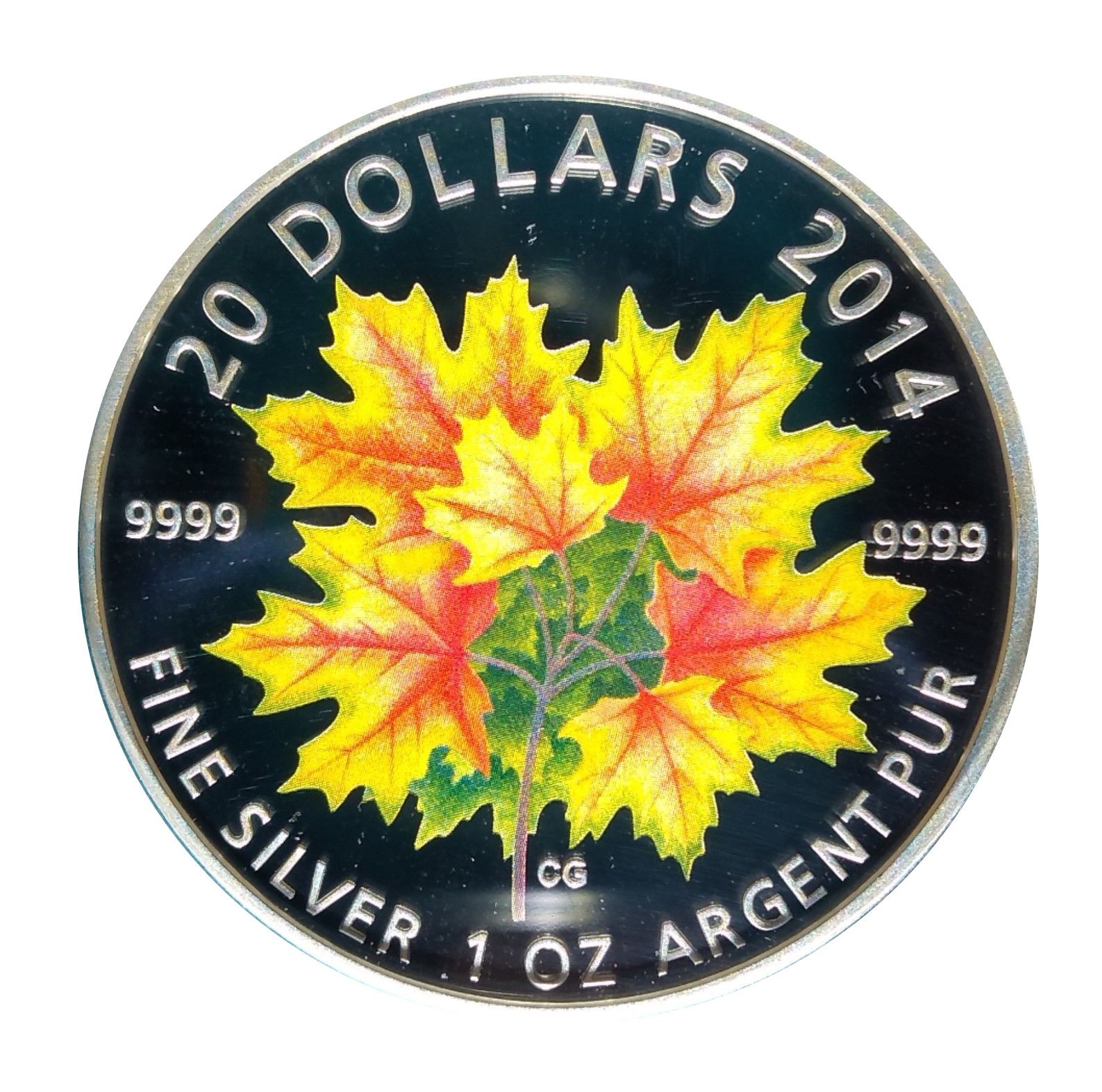 20 долларов — Елизавета II (кленовые листья, светящиеся в темноте)