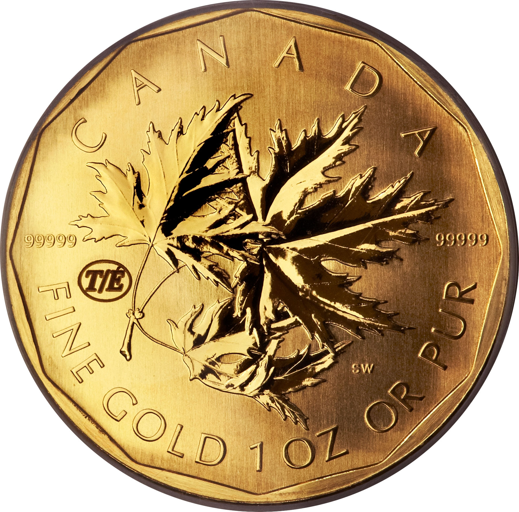 Описание: Дизайн с несколькими кленовыми листьями. Штамп T/É обозначает монету как тестовую/эмиссионную.