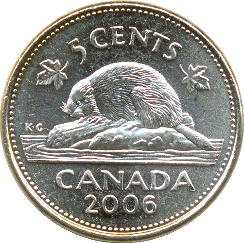 Описание: Бобр над надписью «CANADA» окружен номиналом, по обе стороны от которого расположены кленовые листья.