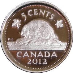 Описание: Бобр над надписью «CANADA», окруженный номиналом, по бокам которого изображены кленовые листья.