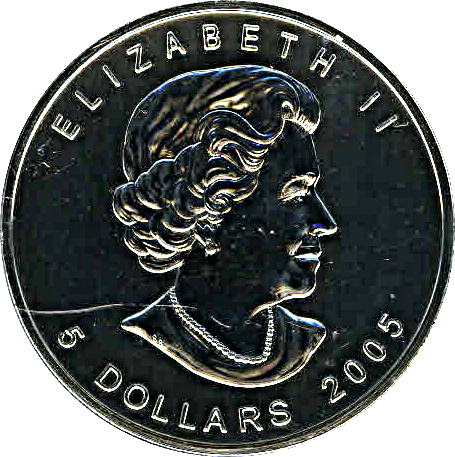 Название: 5 долларов — Елизавета II (1 унция, большой кленовый лист)