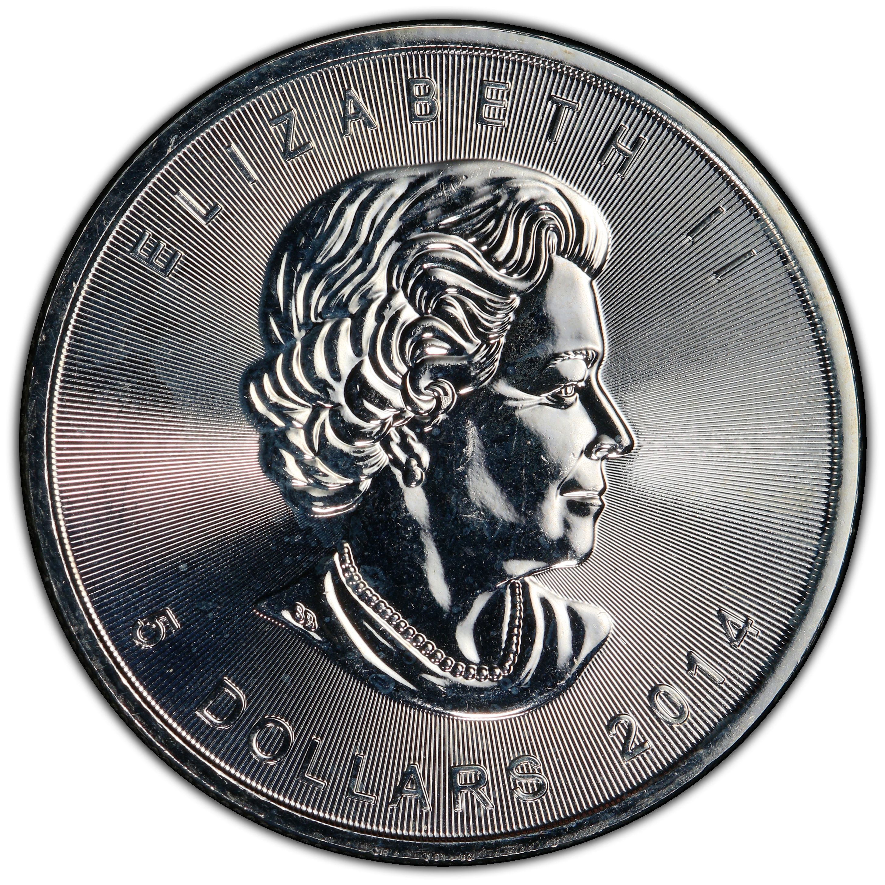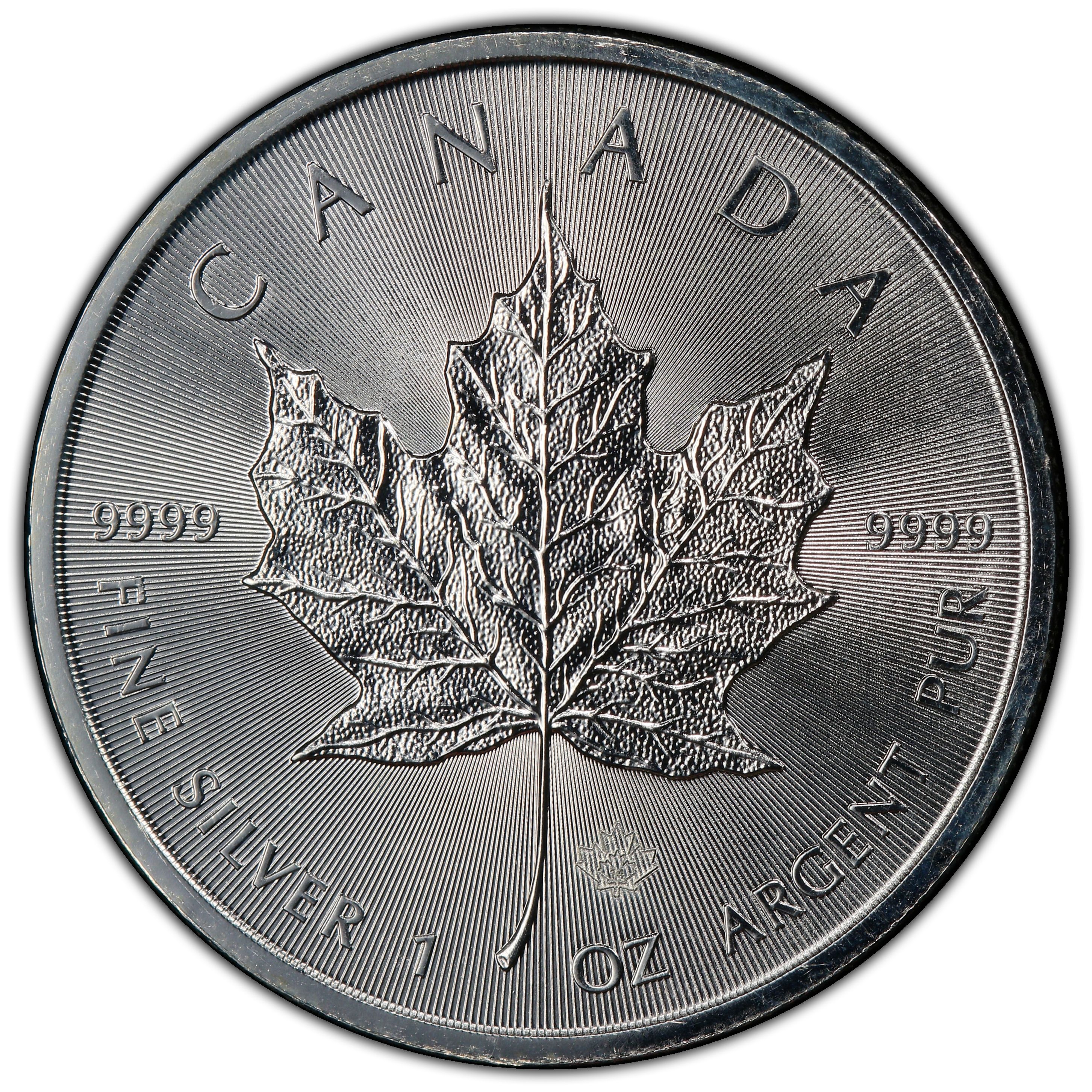Описание: Кленовый лист, соотношение серебра и вес в унциях, а также небольшой защитный знак в виде кленового листа.