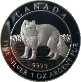 Описание: Арктическая лиса. Это премиальная пробная версия монеты из драгоценного металла, выпущенная с тем же дизайном в том же году.