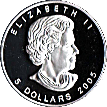 5 долларов — Елизавета II (канадская рысь; 1 унция)