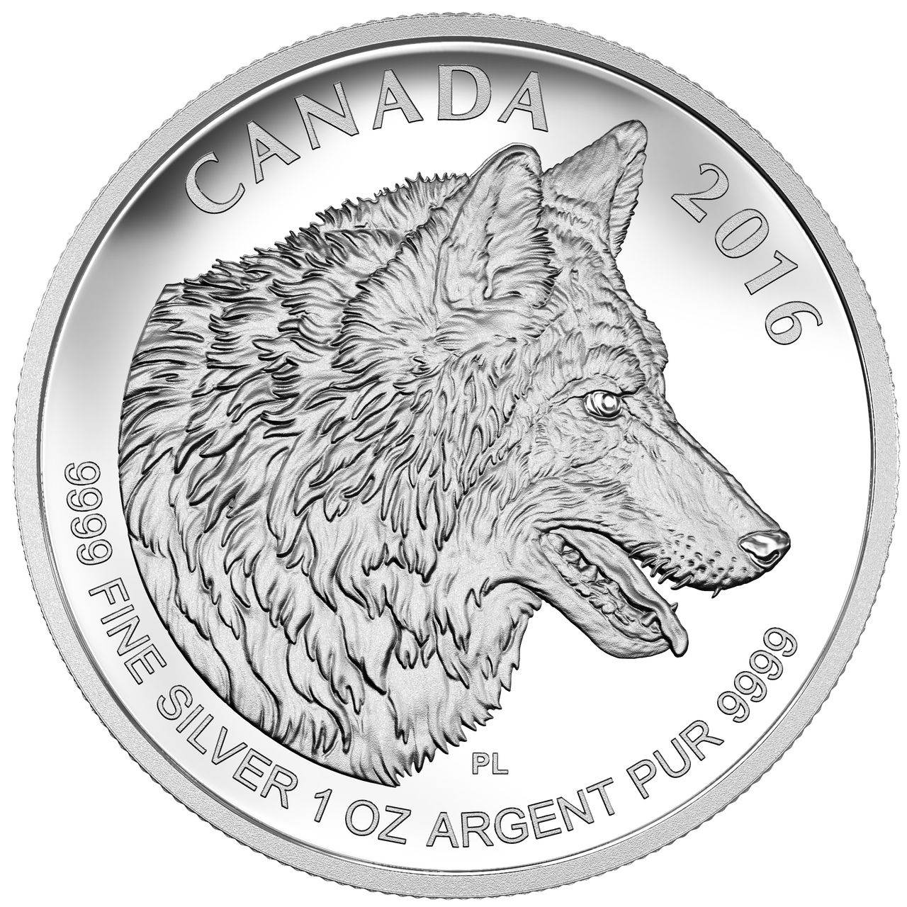 5 долларов — Елизавета II (канадский волк; 1 унция)
