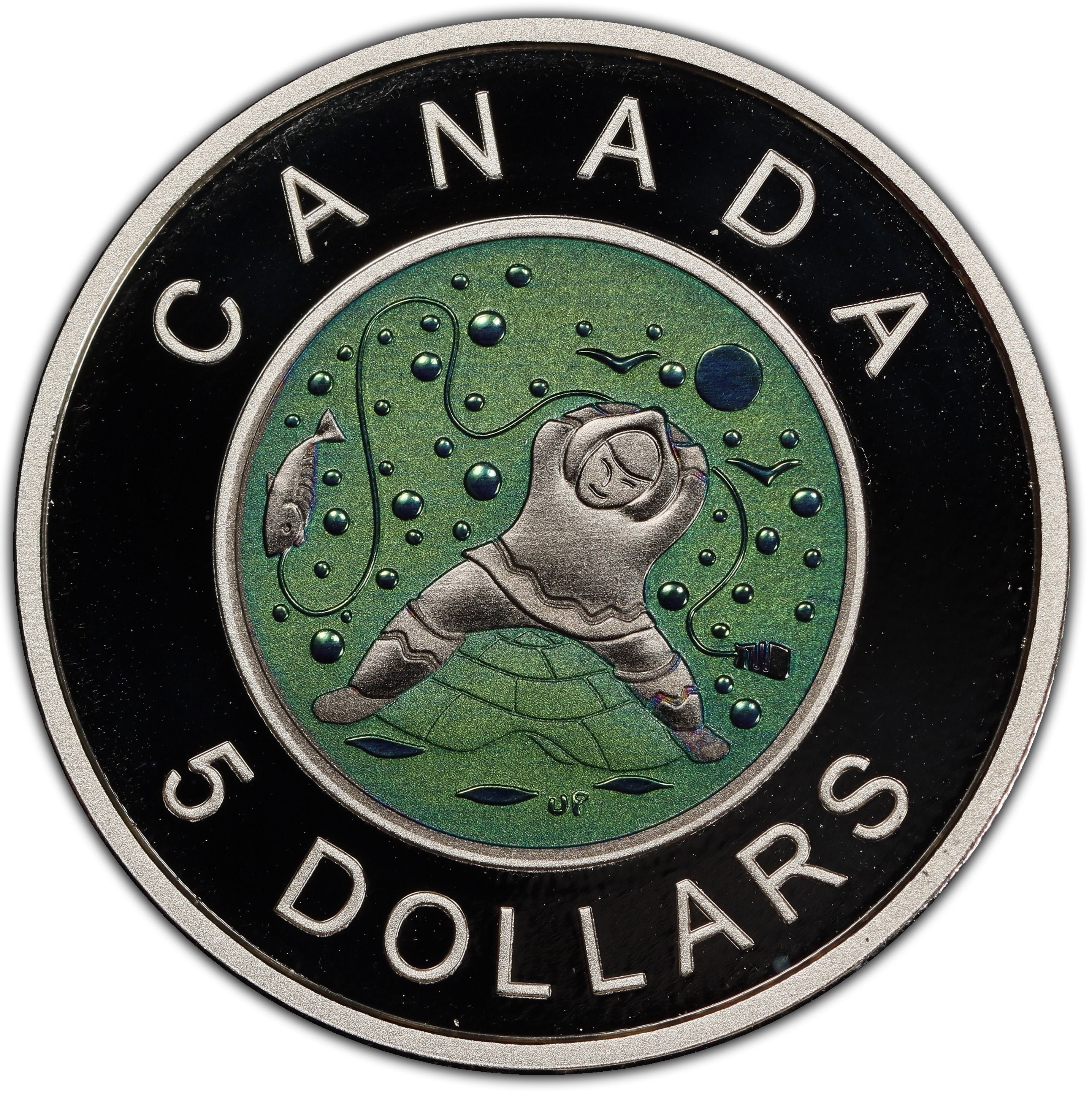 Описание: На монете Пилуртуута изображен радостный рыбак, празднующий свой последний улов. На заднем плане виден защитный иглу рыбака.