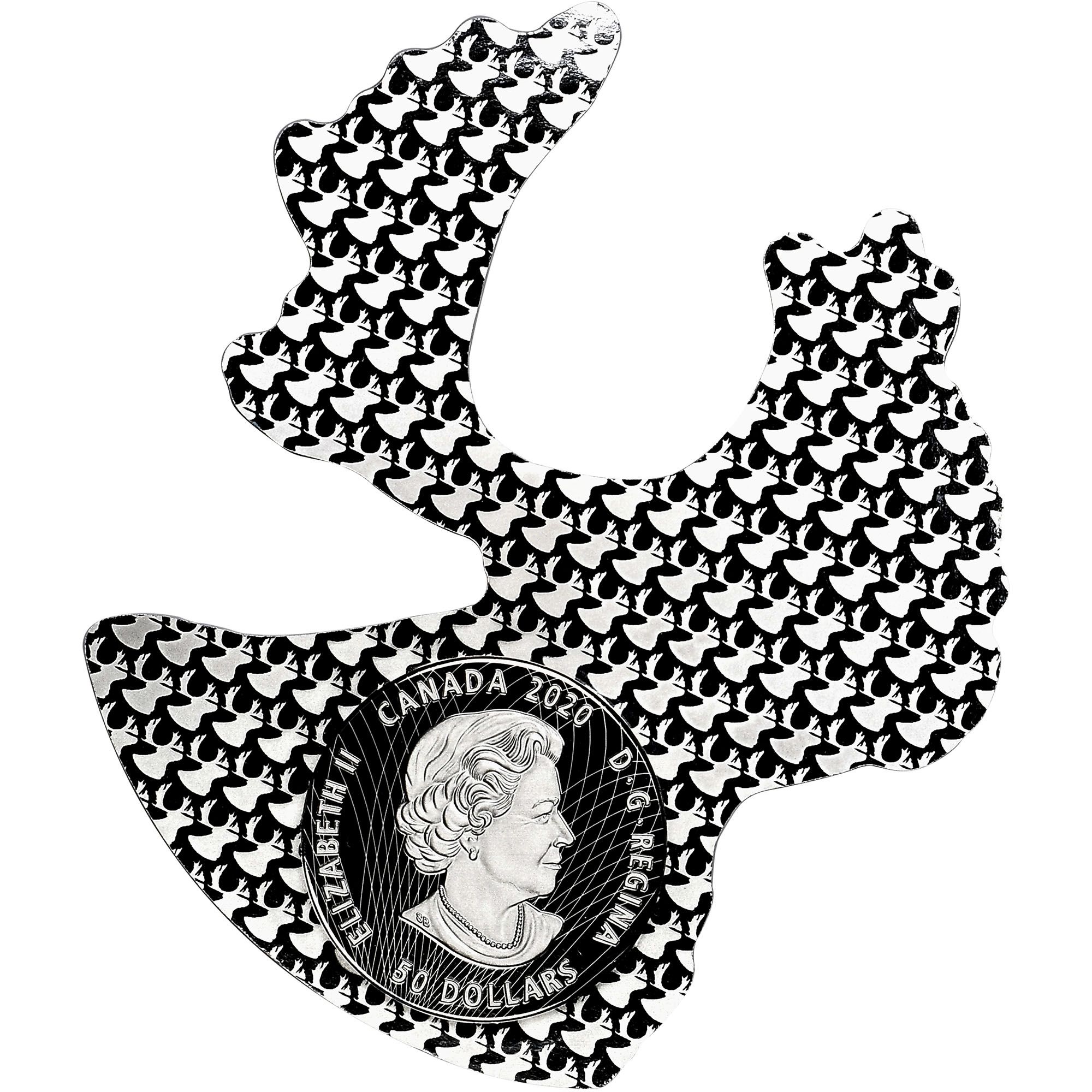 Описание: Каждая монета этой серии была специально разработана с учетом постоянного веса, при этом детали и пропорции оригинальной монеты, находящейся в обращении, остались неизменными. Знаменитый профиль карибу Эмануэля Хана, изображенный на монете номиналом 25 центов, присутствующей в обращении, изображен в рамках собственного силуэта.