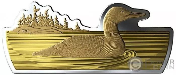 Описание: Ваша монета была специально разработана для обеспечения постоянного веса, при этом детали и пропорции оригинала остались неизменными. На реверсе оригинальной монеты номиналом 1 доллар 1987 года изображена культовая гага Роберта-Ральфа Кармайкла, плавающая на тихом озере с небольшим островком, покрытым хвойными деревьями, на заднем плане. Сцена изображена в рамках собственного силуэта.