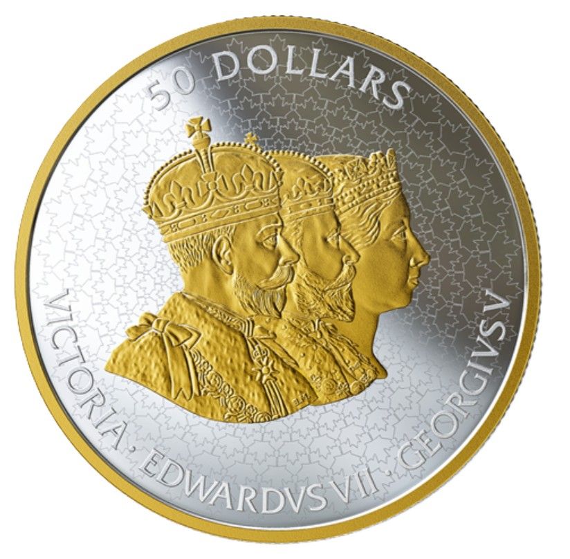 50 доларів (на ім'я Вікторії, Едуарда VII та Георга VI; монета-пазл — центральна частина)