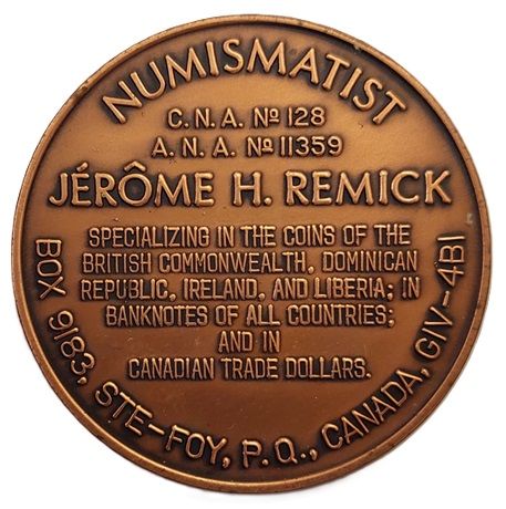 Медаль — Канадська нумізматична асоціація (Джером Ремік)