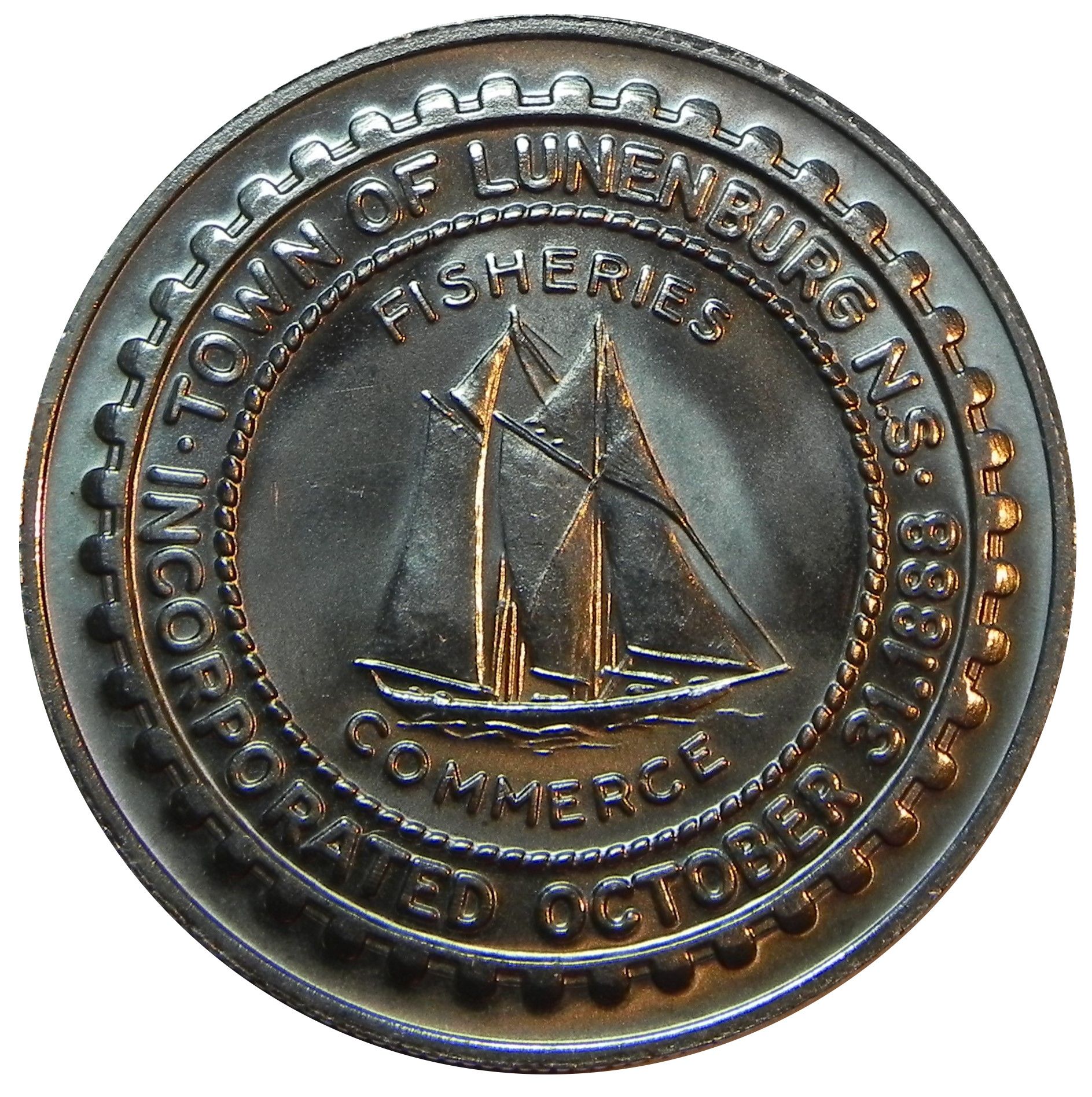Описание: Зображення шхуни «Блуноуз» у центрі. Текст у кільці навколо.