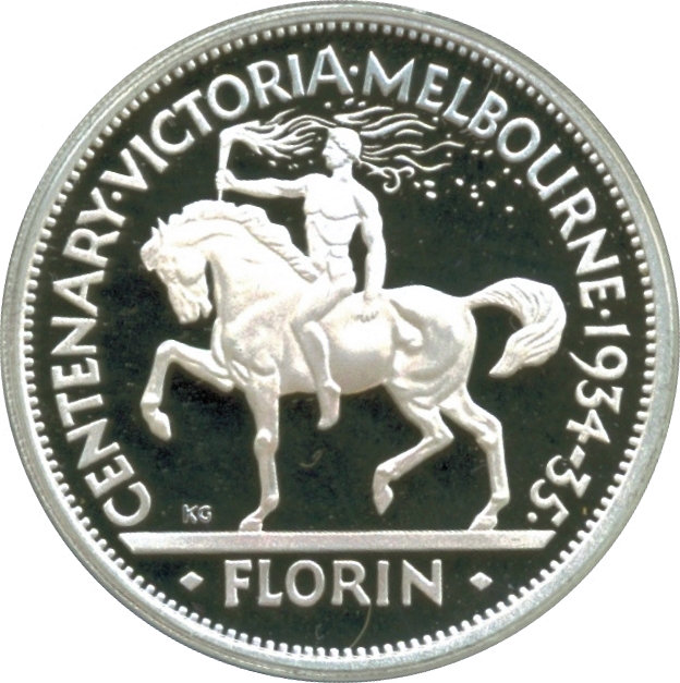 Описание: Репліка флорина 1934/35 років, випущеного до сторіччя