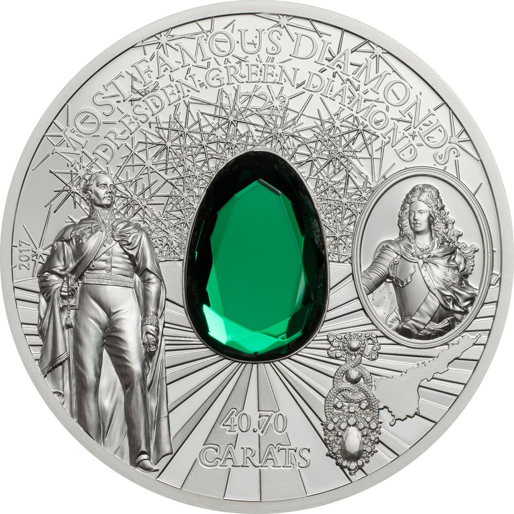10 долларов — Елизавета II (Дрезденский зеленый бриллиант)