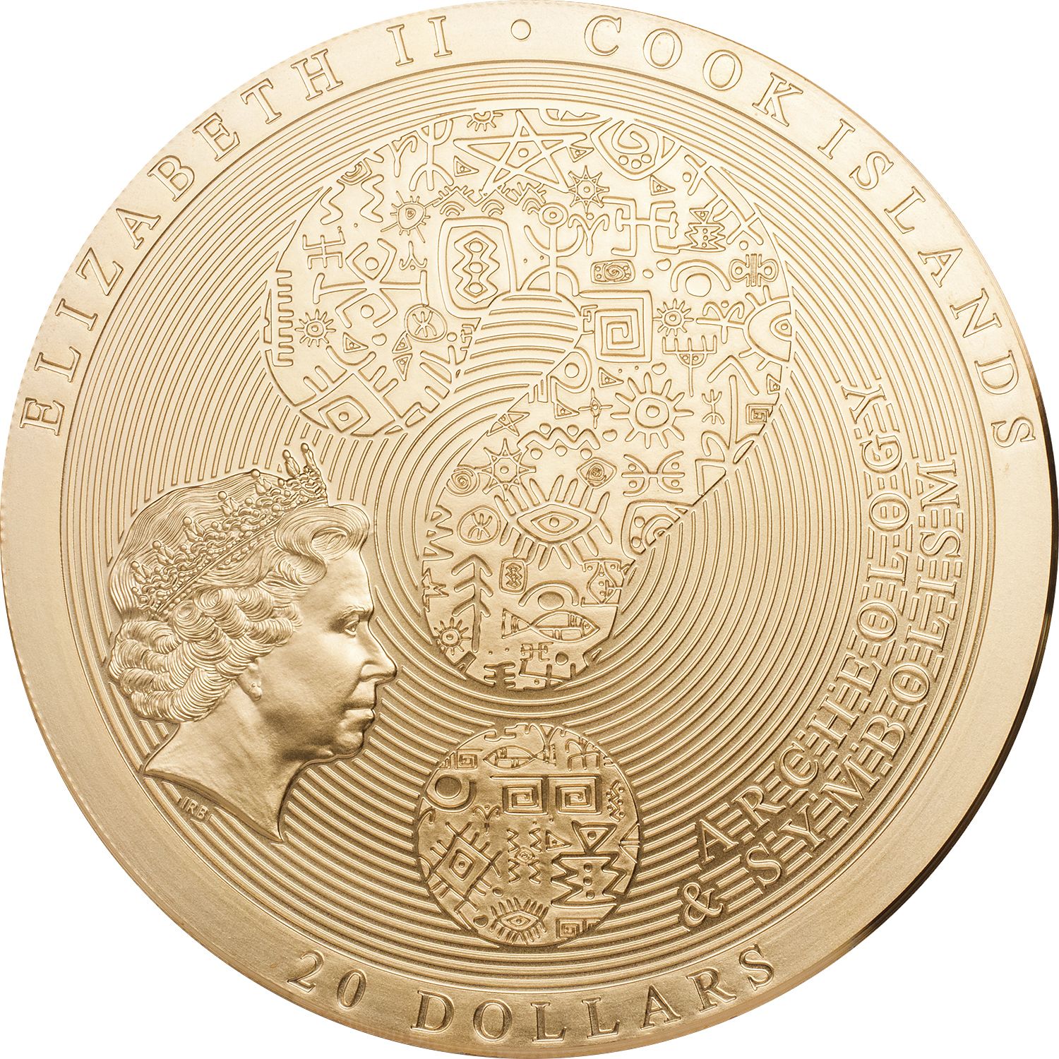 20 долларов — Елизавета II (ацтекский календарь, позолоченная)